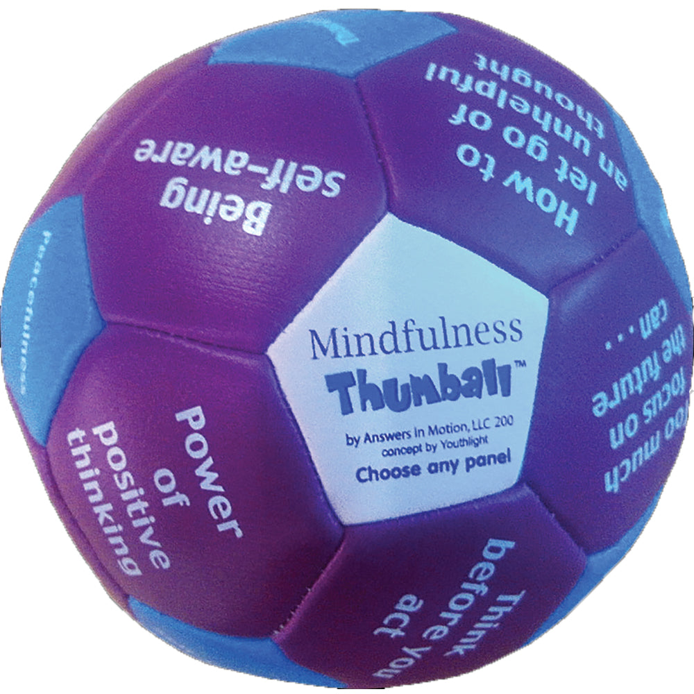 Thumball is a soft stuffed ball to throw, roll, or pass in a circle or randomly. Catch it! Look under your thumb. Respond to the prompt. Kids and teens absolutely love this interactive tool that will get them talking and sharing. Without even knowing it, you will be encouraging the use of interpersonal skills including taking turns, eye contact, listening, responding, valuing similarities and respecting individual differences.
