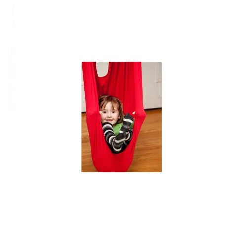 Cocoon swings are often used in occupational therapy, as well as in the classroom. Besides the benefits off deep pressure input, they can help children who have difficulty maintaining their equilibrium. The rocking or swinging motion promotes improved balance. This can help in everyday skill building such as stair climbing and safely maneuvering around a classroom. Children love the feel of being snugly tucked inside, while experiencing the fun sensation of swinging.