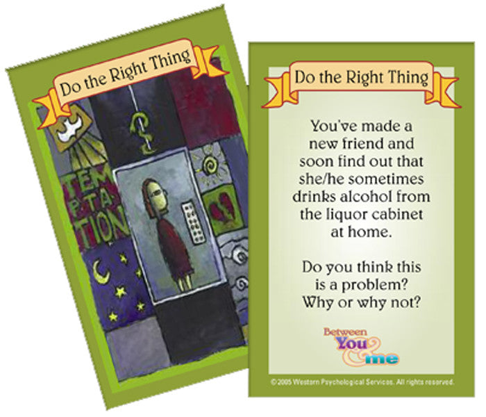 Questions presented on the cards give players the opportunity to discuss feelings, ethical dilemmas, difficult social situations, privacy issues, empathy, values, and more. The sharing that takes place during the course of the game is both therapeutic and fun. Also included are four brief Parent Guides: Raising Children We Can Be Proud Of; What We Need to Teach Our Children: Trust Your Gut; Discussing Drugs With Your Children, and The Darkest Secret