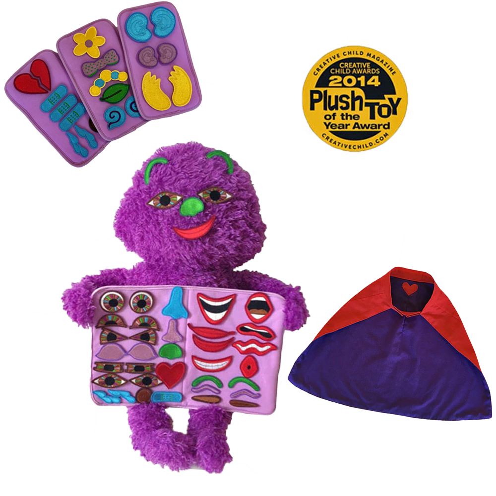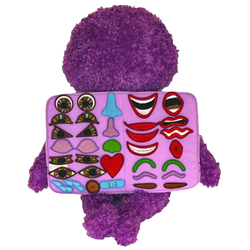 Big, soft, purple, and furry, Meebie is appealing to children of any race, culture, ability, gender, or language. Beautiful and tough, the removable pieces let kids or grown-ups change Meebie’s facial expression to create any kind of emotion. Meebie can take kids' daily ups and downs, and big challenges, too.