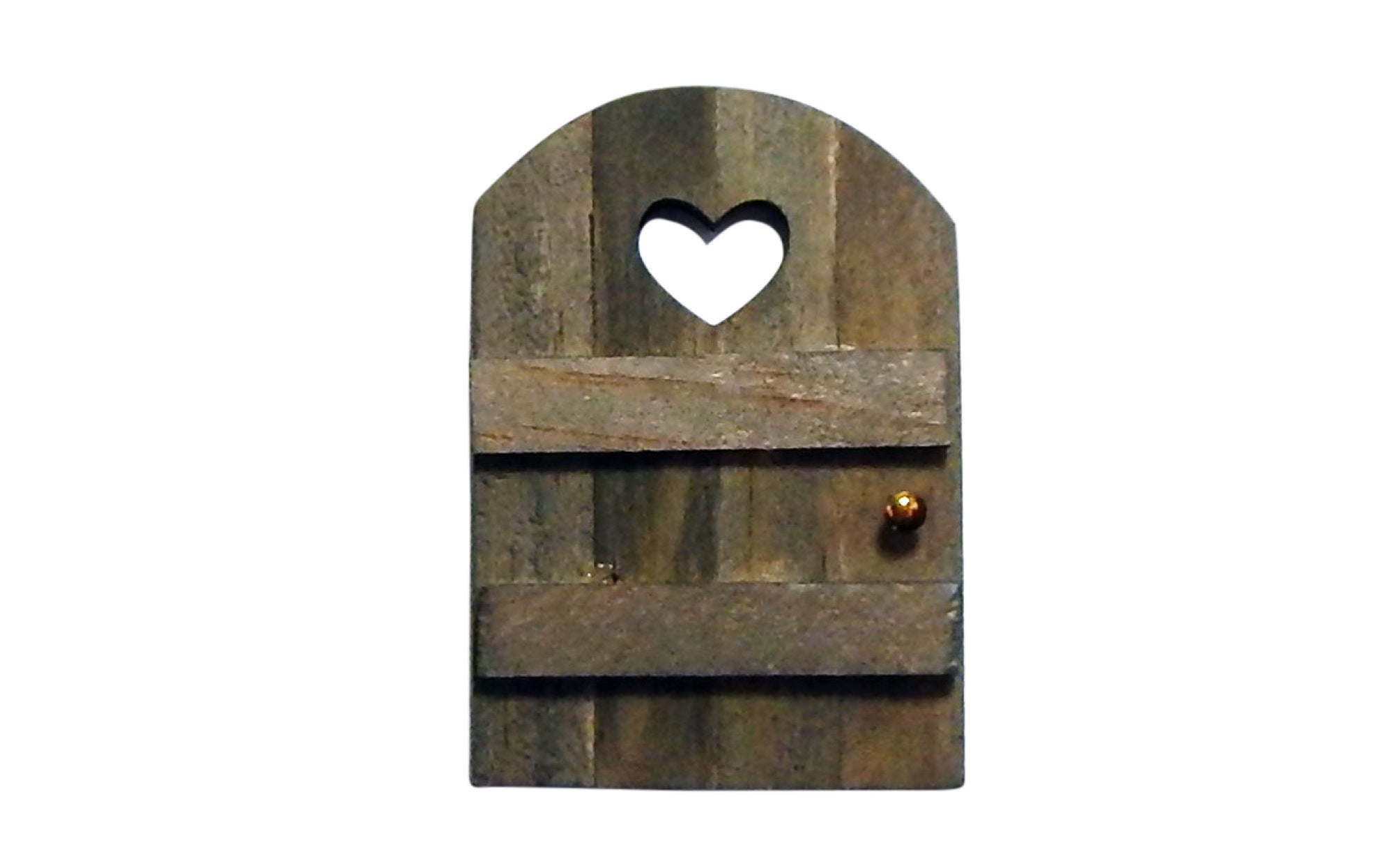 A small wooden door with cut out heart in it. Is 2 1/2" tall.