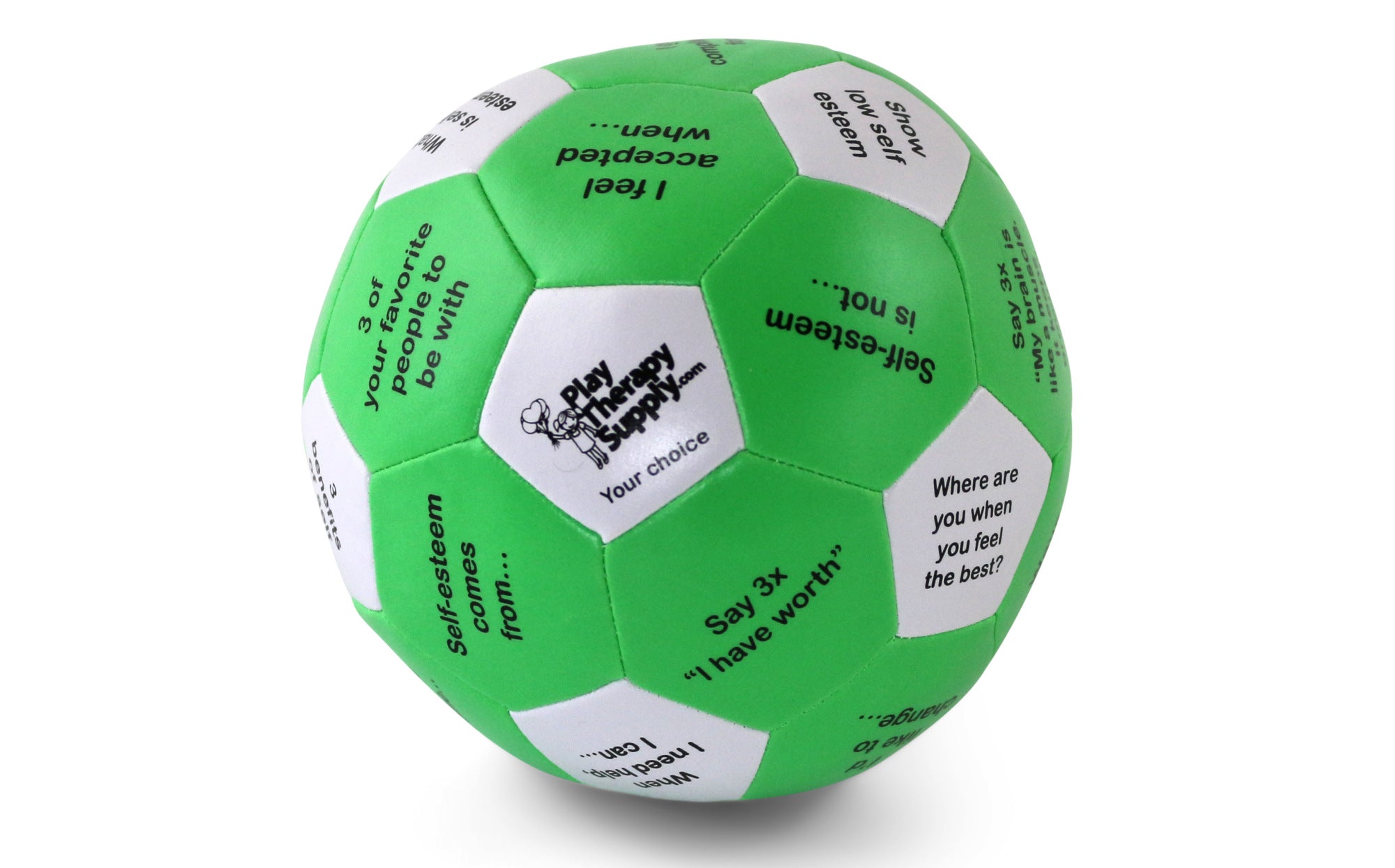 Build self confidence and learn from other players with the Self Esteem Thumball. Answer a question, listen to other participants, and learn how to grow your sense of self. Together, players can support each other and get new ideas. Ages 8-adult. Fun tool in therapy, school counseling, and at home too!