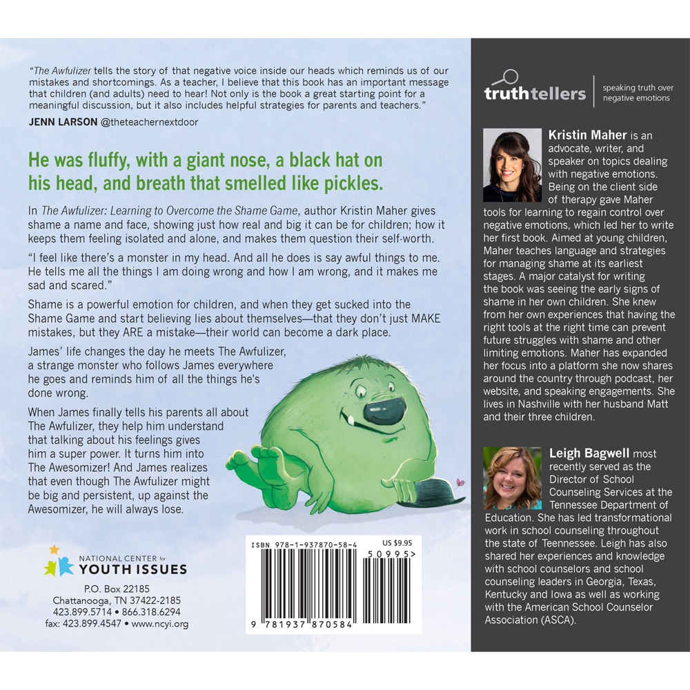 In The Awfulizer: Learning to Overcome the Shame Game, author Kristin Maher gives shame a name and face, showing just how real and big it can be for children; how it keeps them feeling isolated and alone, and makes them question their self-worth.