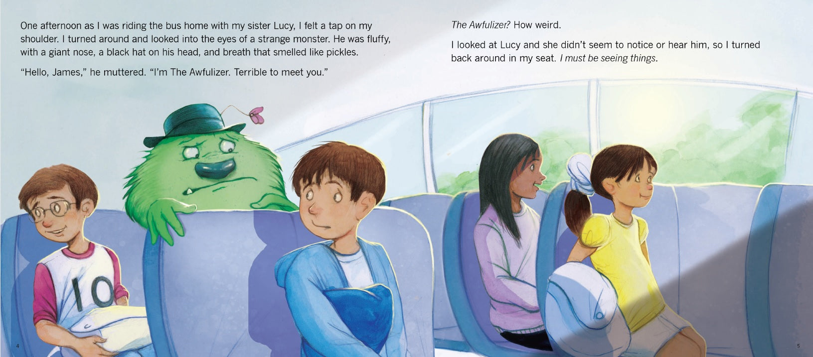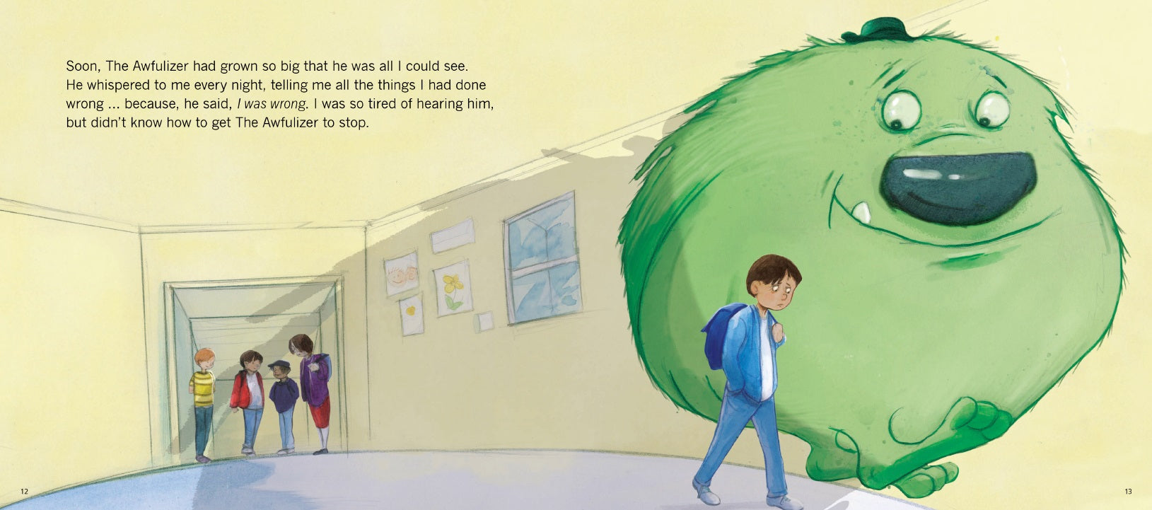 James’ life changes the day he meets The Awfulizer, a strange monster with a giant nose and breath that smells like pickles. The Awfulizer follows James everywhere he goes and reminds him of all the things he has done wrong.